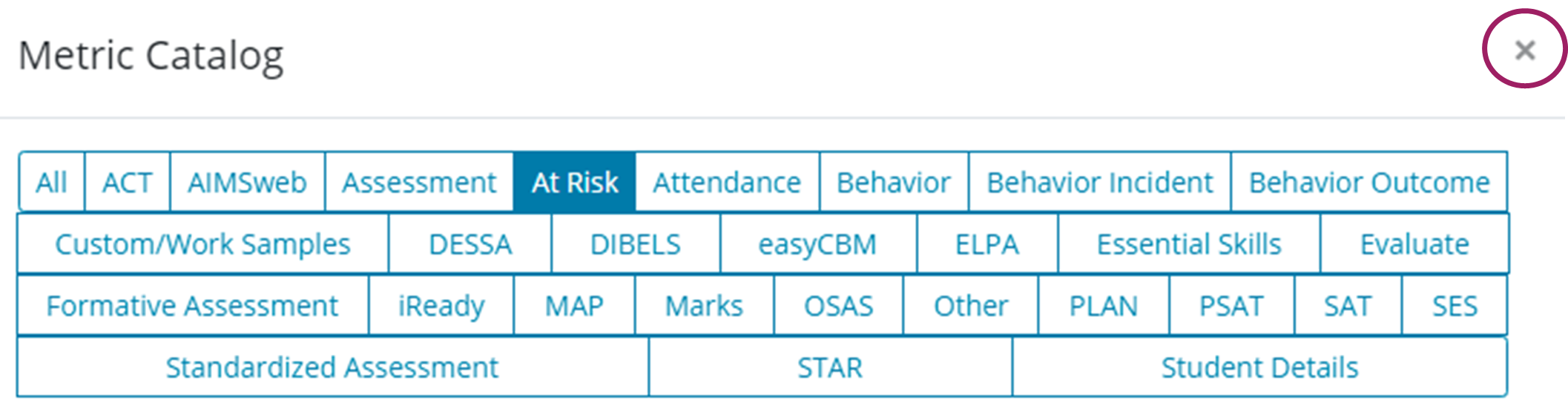 Click the (x) in the upper left-hand corner to exit the Metric Catalog.