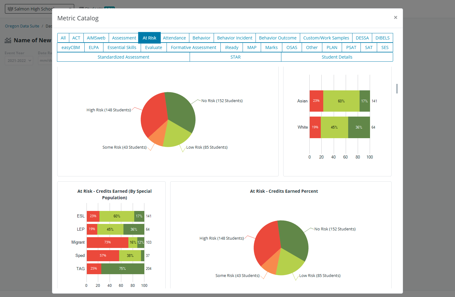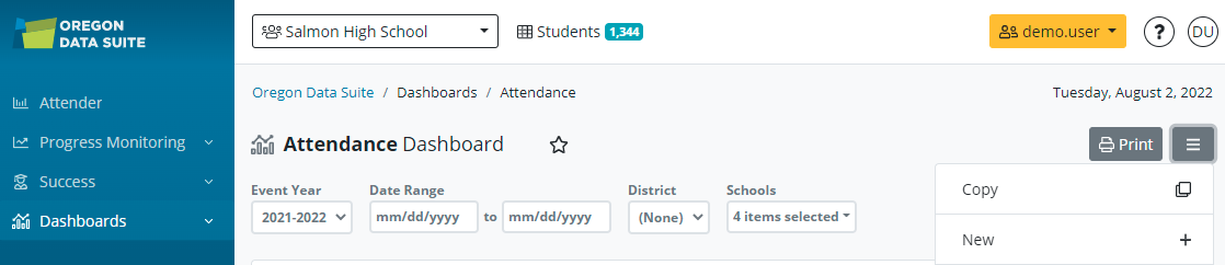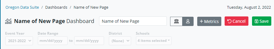 The Oregon Data Suite provides the ability for a user to customize the dashboards that they use to analyze data within their school. You can copy System Default Dashboard pages, create new pages, and edit personalized pages.