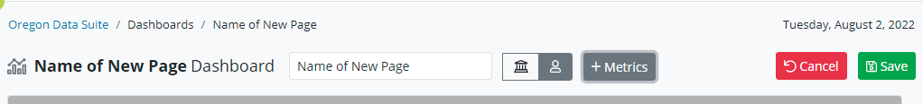Once you copy or create a new page, the +Metrics box will appear, click on it to make your metric selections.