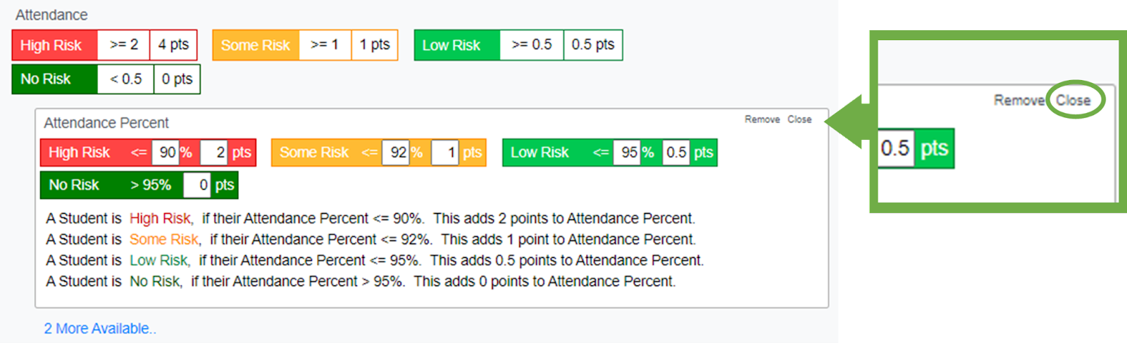 Includes editing an indicator category or individual indicators: (Example: Attendance)