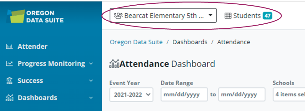 The Oregon Data Suite offers users the ability to easily create a custom group of students that can be filtered.