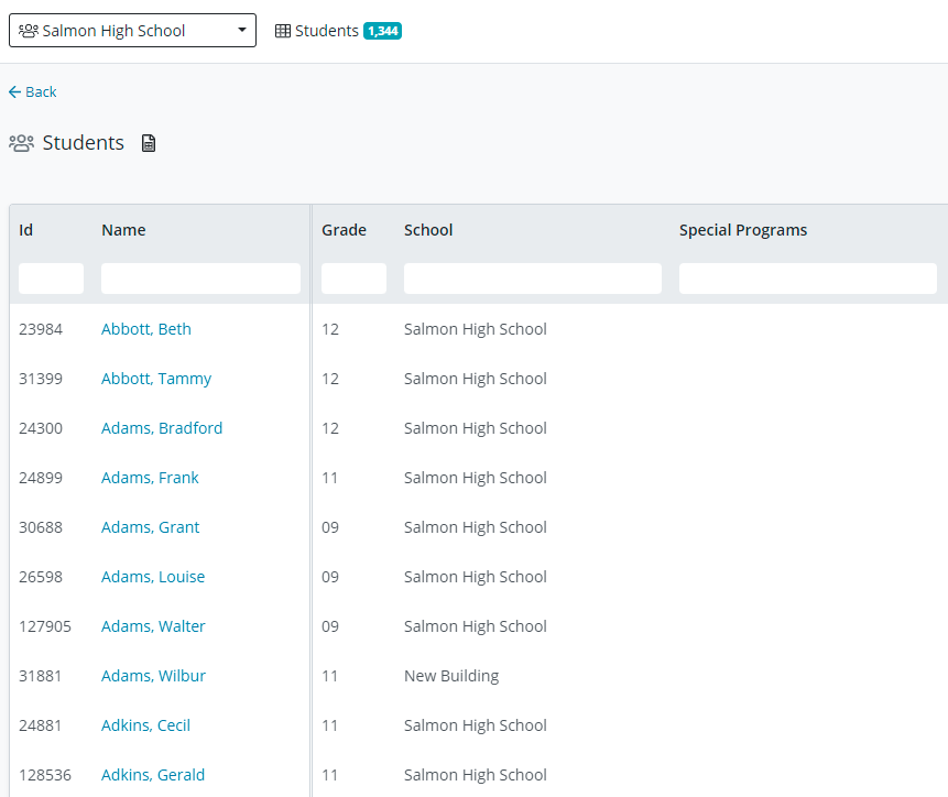 This will give you your list of students from the filter you selected. You can also filter on the headers to refine your list.