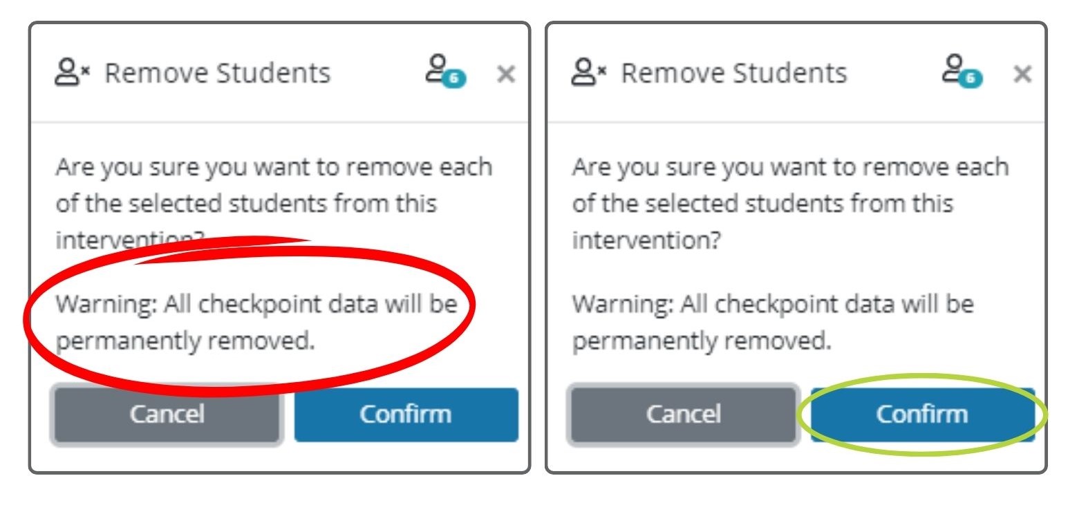 WARNING: All checkpoint data will be permanently removed for selected students.
