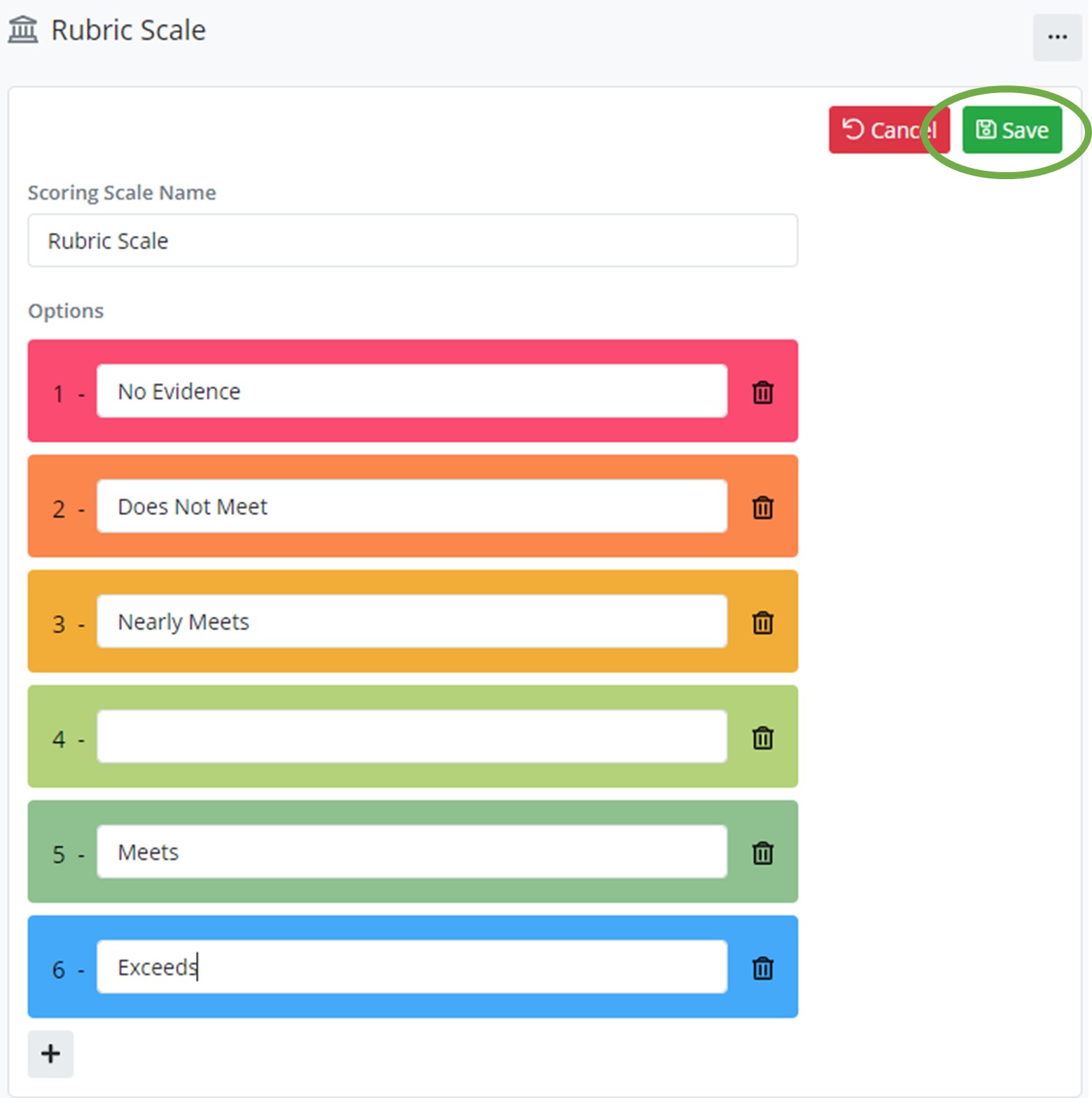 Click Save to save edits done on the scoring scale.