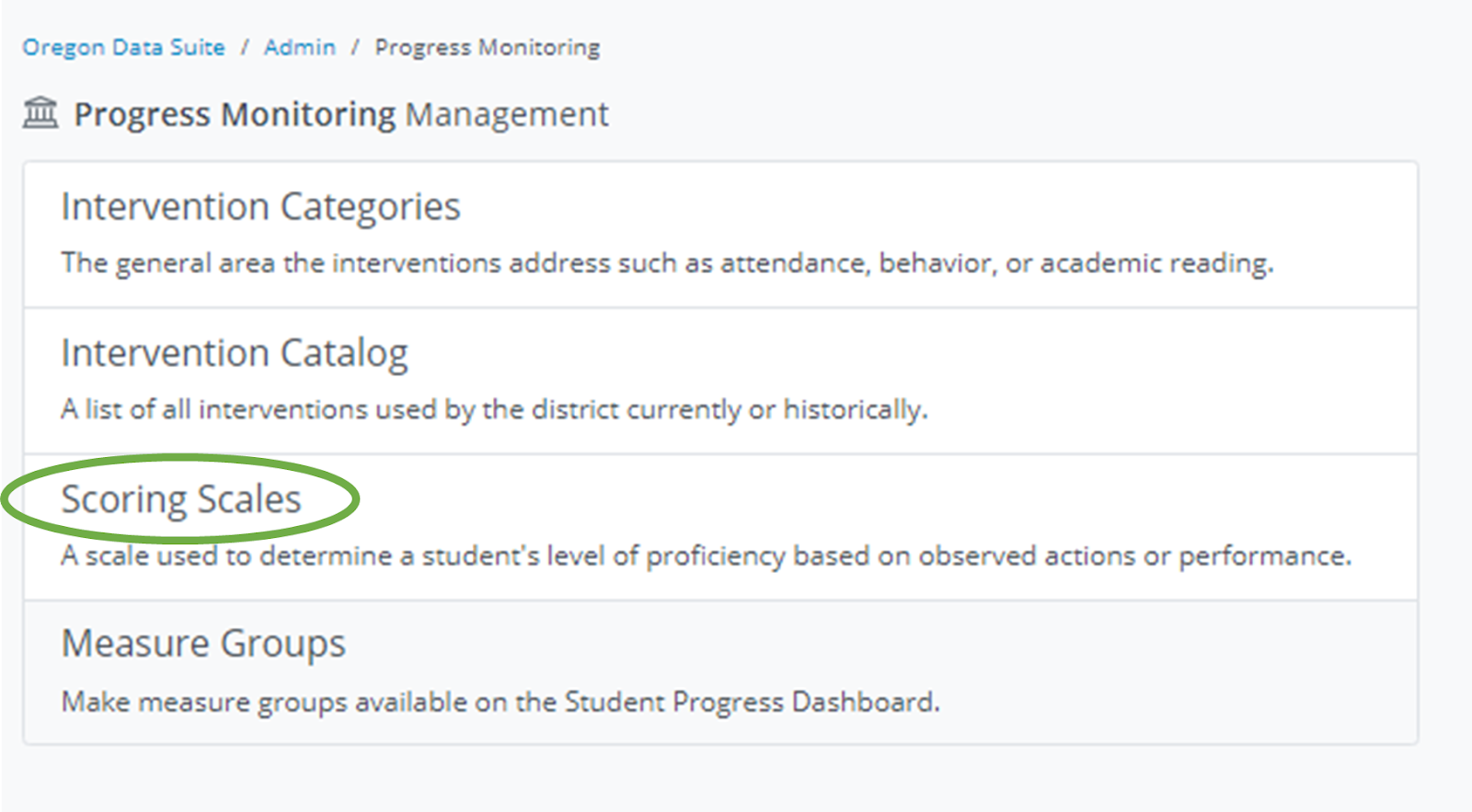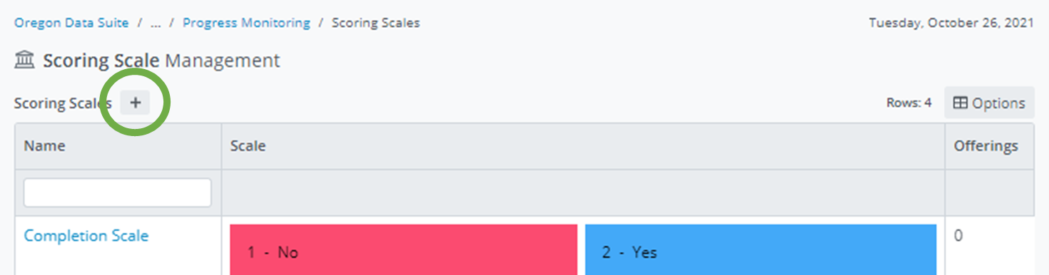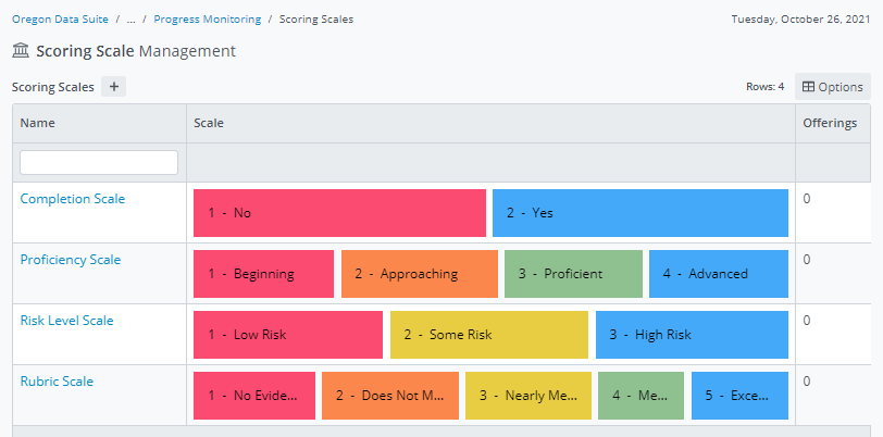 Pathway: Admin>Progress Monitoring>Scoring Scales