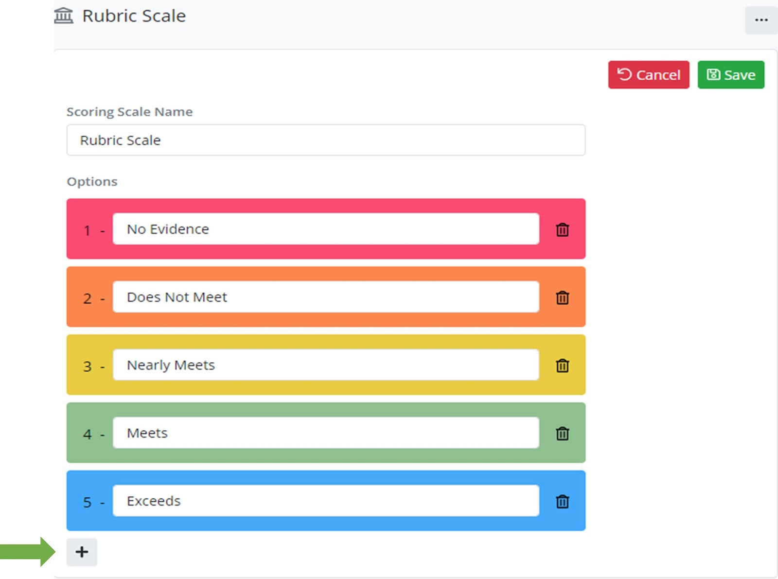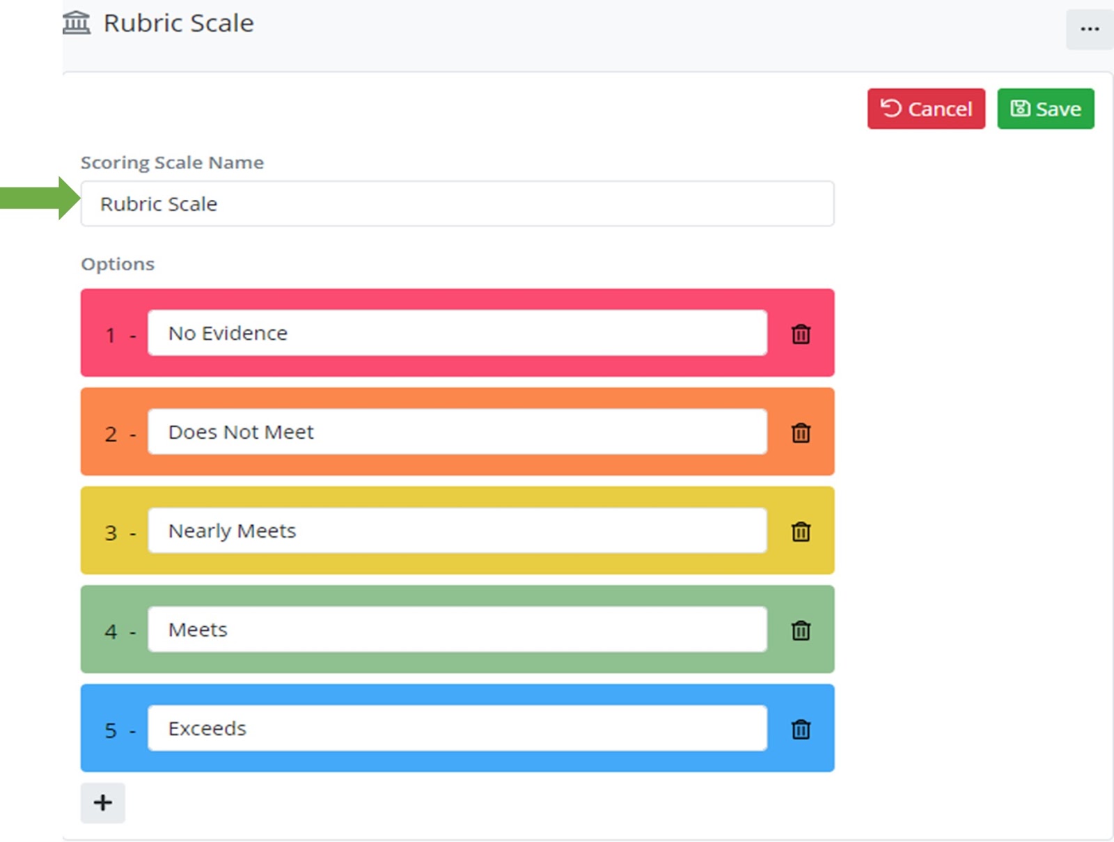 Click the + to the right of Scoring Scale