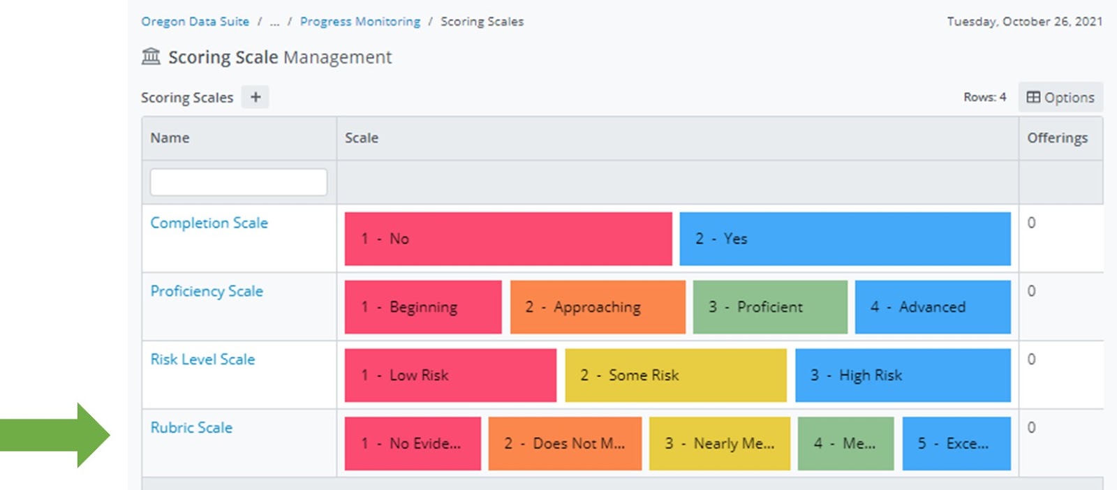 Click on the name of the Scoring Scale you would like to edit.