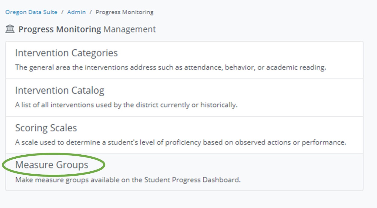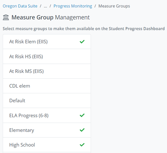 Click on the measure groups you would available on the Student Progress page