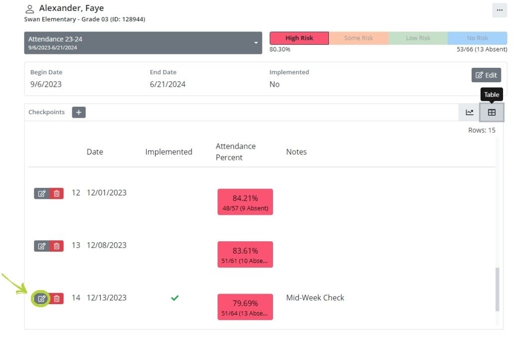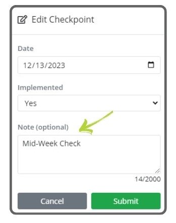 Click the Paper & Pencil button next to the checkpoint you want to update