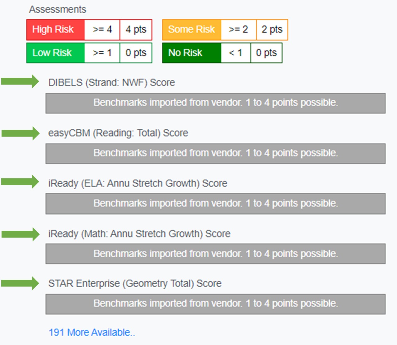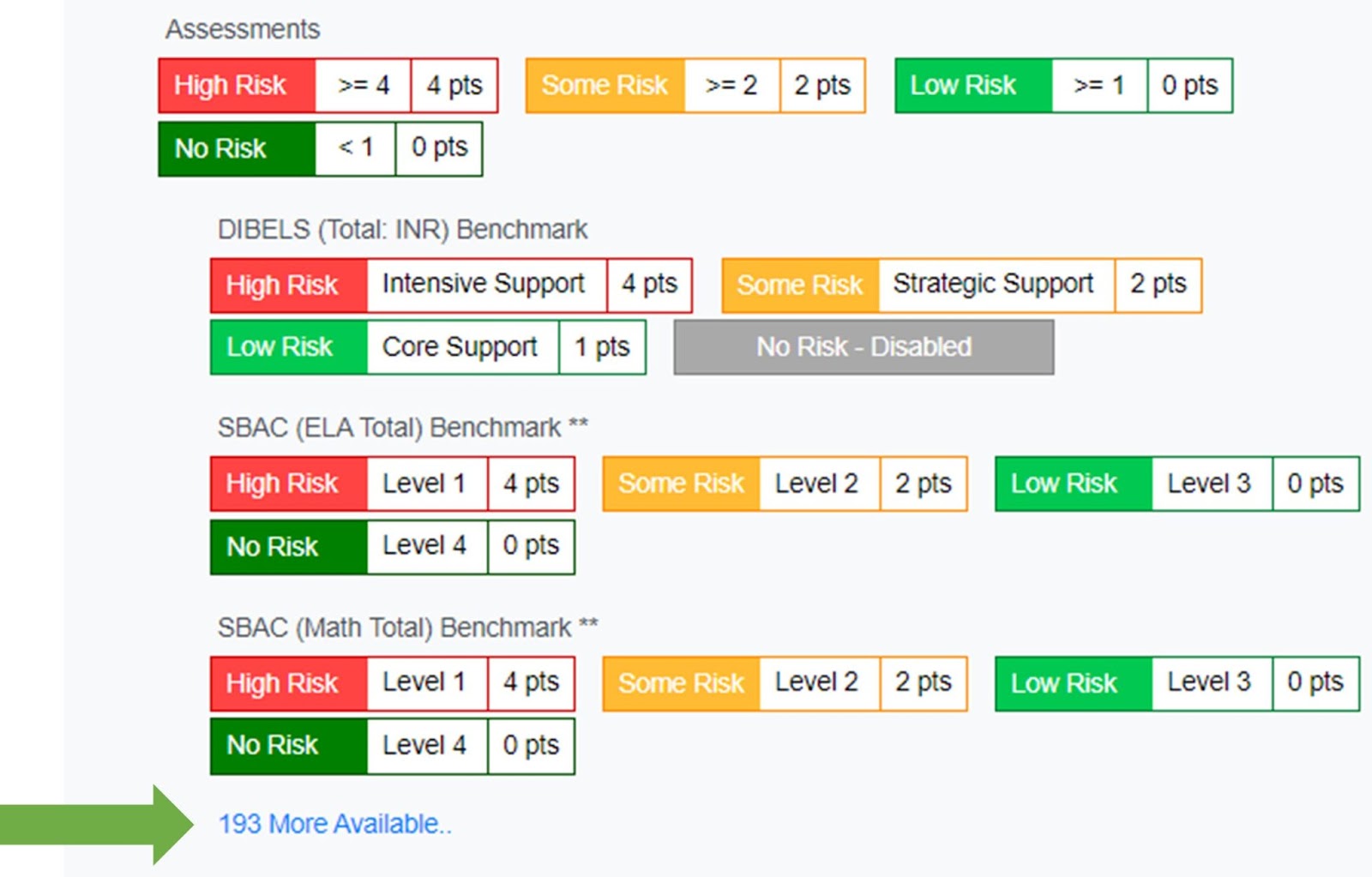 Click the “More Available” link to see more indicators