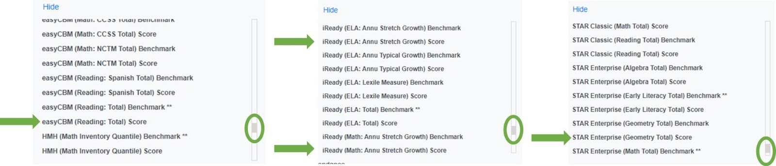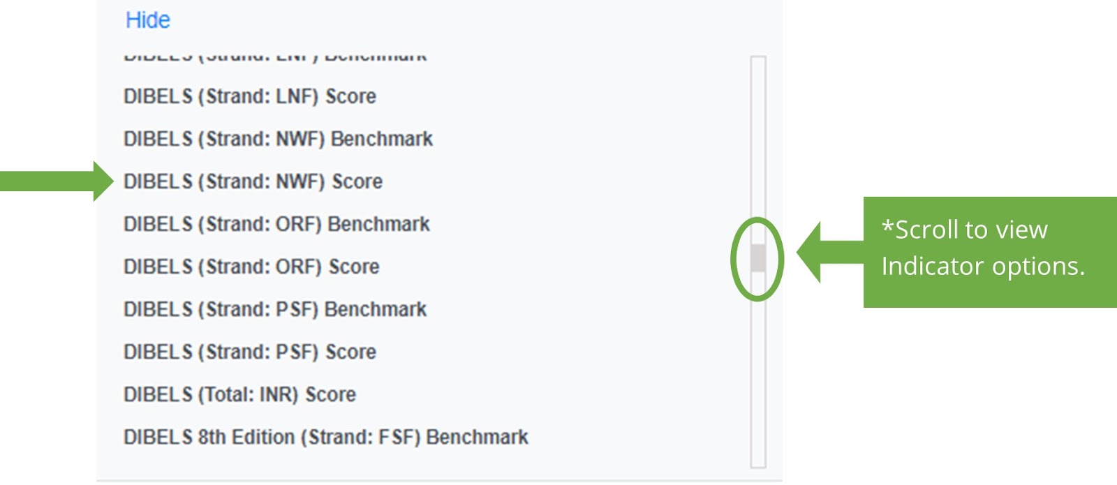 Click on the Indicator(s) you would like to include in your KPI for Progress Monitoring Measure Group.
